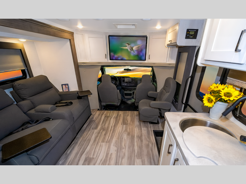Sleeps 4 Slides 1 Length 25 ft 4 in Ext Width 8 ft Ext Height 10 ft 6 in Int Height 6 ft 5 in Interior Color Smoke, Fog Exterior Color Standard Graphics, Full Paint Option, Partial Paint Option GVWR 14500 lbs Fresh Water Capacity 38 gals Grey Water Capacity 38 gals Black Water Capacity 38 gals Furnace BTU 25000 btu Generator 4.0 kW Enclosed Fuel Type Gasoline Engine 7.3L V8 Chassis Ford E-450 Fuel Capacity 55 gals Available Beds Murphy Refrigerator Type 12V Double Door Refrigerator Size 8 cu ft Cooktop Burners 3 Number of Awnings 1 LP Tank Capacity 42 lbs Water Heater Type Tankless AC BTU 13500 btu TV Info 40" TV Awning Info Power w/LED Lights & Speakers Shower Type Standard Similar Floorplans